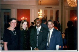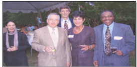 Prof. Hilary Inyang (right) as a guest of the Swiss Ambassador to the United States, Mr. Christian Blickenstorfer at the evening reception organized by the Embassy of Switzerland, Washington DC, for friends of Switzerland in 2002. From left to right are Mrs. Susanne Blickenstorfer; Amb. Blickenstorfer; Dr. David Stoner, Head of US Congressional Affairs at the National Science Foundation; Dr. Karen Becker, Policy Advisor in the Officer of International and Refugee Health, US Dept. of Health and Human Services; and Prof. Hilary Inyang.