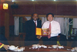 Prof. Inyang receives a performance award at the end of his term as ISEG President at the concluding event of the ISEG co-organised conference in Hong Kong, October, 2005.